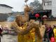 激昂的锣鼓声便响彻古寨。村民锣鼓队身着彩衣奏响欢歌,一条金黄稻草扎制的草龙腾空而起,舞龙者步伐矫健,草龙辗转腾挪、昂首摆尾,引得围观群众阵阵欢呼,大家纷纷举手机定格这乡土气息浓郁的瞬间。